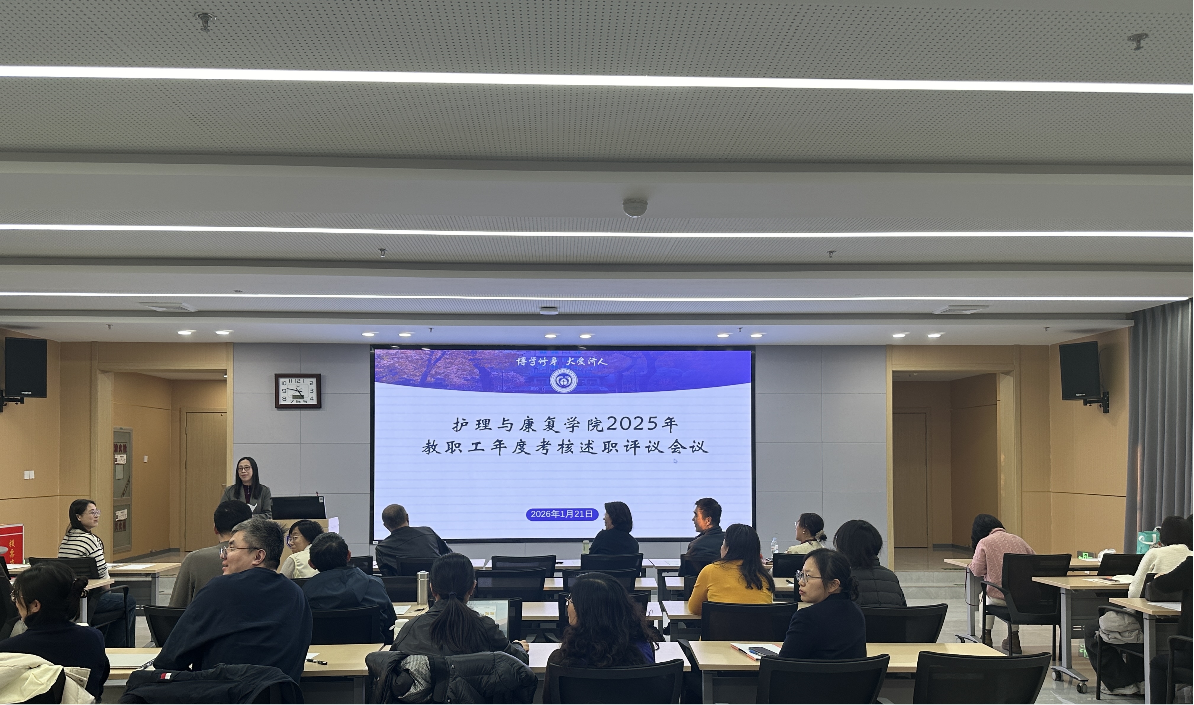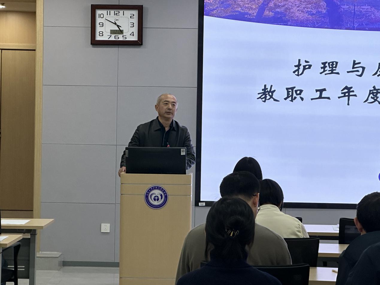 1月21日下午,护理与康复学院召开2025年教职工年度考核述职评议会议暨秋季学期期末工作会议,党委书记王晓林、院长王克芳、领导班子成员及全体教职工参会,副院长厉萍主持会议。