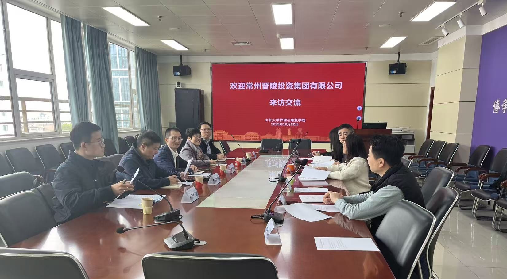 10月22日,常州晋陵投资集团有限公司副总经理岳鸣刚一行五人来访山东大学护理与康复学院,就校企合作、人才培养等议题开展深度交流。山东大学护理与康复学院党委副书记艾斌、副院长陈欧、齐鲁医学院科研与交流办公室主任秦秀贵以及学院相关系部负责人参会。