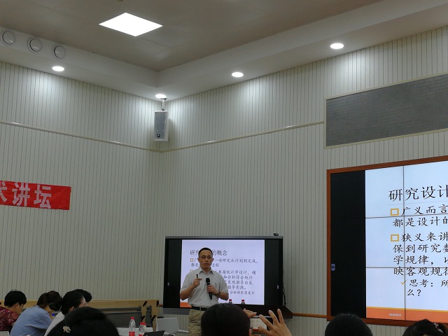 上午8点,论坛拉开了帷幕。在厉萍教授做了简单的介绍后,张卫华副教授就正式开始了他的讲座。首先,他从“科学研究”四字的概念带大家进入了今天的论坛正题,随后张卫华副教授分别从专业研究选题、临床研究设计的分类、研究时点、研究变量之间的关系、设计的基本原则、研究工具的选择、研究目标的设定、研究内容的设计等各个方面为大家系统梳理了科学研究的整个过程。张卫华副教授还特别强调了研究者应当具备的科研素养,他指出,做研究一定要对自己的专业方向有一个正确的认识,了解本专业的核心内容,并且应积极探索多学科交叉的领域。不仅要有扎实的专业知识,做到“面”广“点”深,还应该具备归纳、推理的逻辑思维能力,对科学研究抱有兴趣,注重培养自己独立思考的能力。此外,他还特别提到,研究过程中的专业词汇应当谨慎的正确使用,为了使研究更加严谨、科学,研究者还应当掌握一定的流行病学基础知识和统计学知识。最后,在场的学生提出了多个关于研究以及投稿方面的问题,张卫华副教授均一一给出了详细的解答。讲座结束后,台下师生便响起了一片热烈的掌声。10点15分,此次论坛圆满结束。