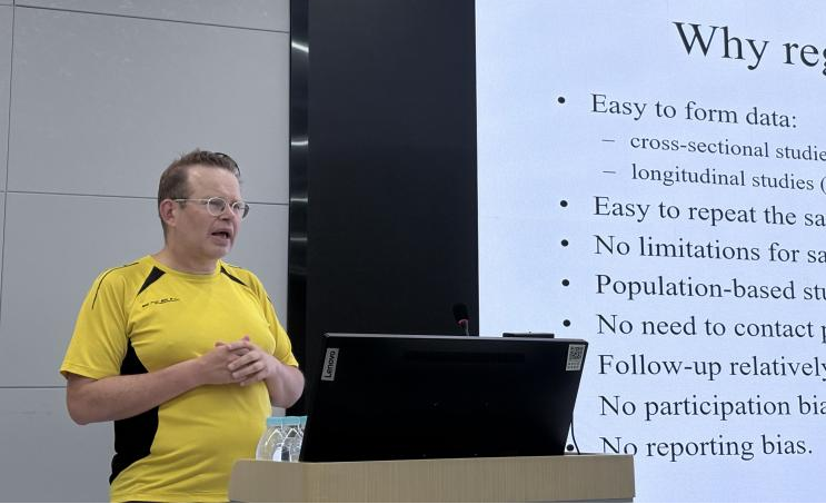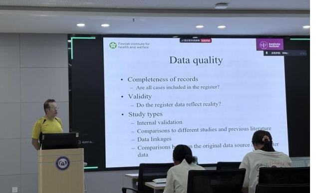 课堂上,Mika Gissler教授首先简要介绍了北欧人口注册系统的具体情况,讲解了健康信息系统的背景、定义、如何测量暴露与结局因素及收集数据等内容,接着围绕基于注册的流行病学基础,讲解了医学出生登记、围产期监测、统计和研究,并以北欧四国为例介绍了重要的健康相关注册登记系统。