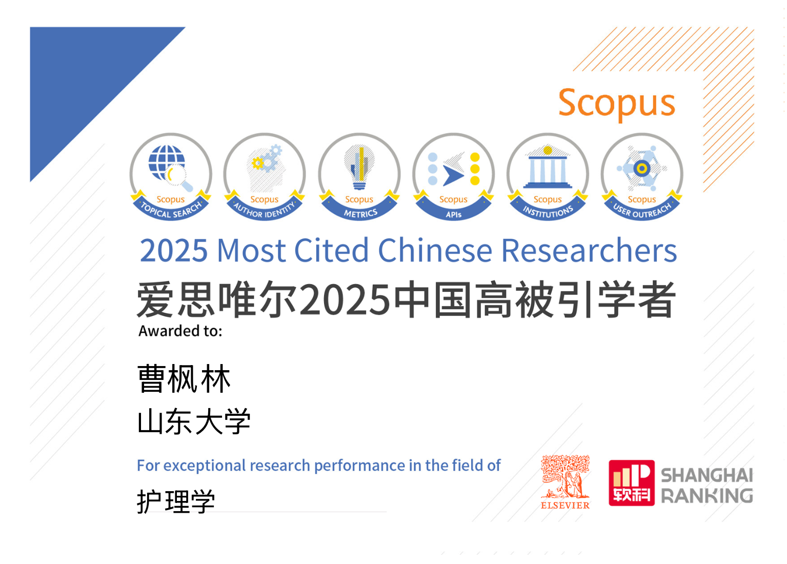 2026年1月30日,学术出版业巨头爱思唯尔(Elsevier)重磅发布2025“中国高被引学者”(Highly Cited Chinese Researchers)榜单,涵盖了各学科领域中具有全球影响力的中国学者。在这份备受瞩目的榜单上,我院曹枫林教授再次荣登其中。自2014年以来,曹枫林教授已连续十二年入选榜单。