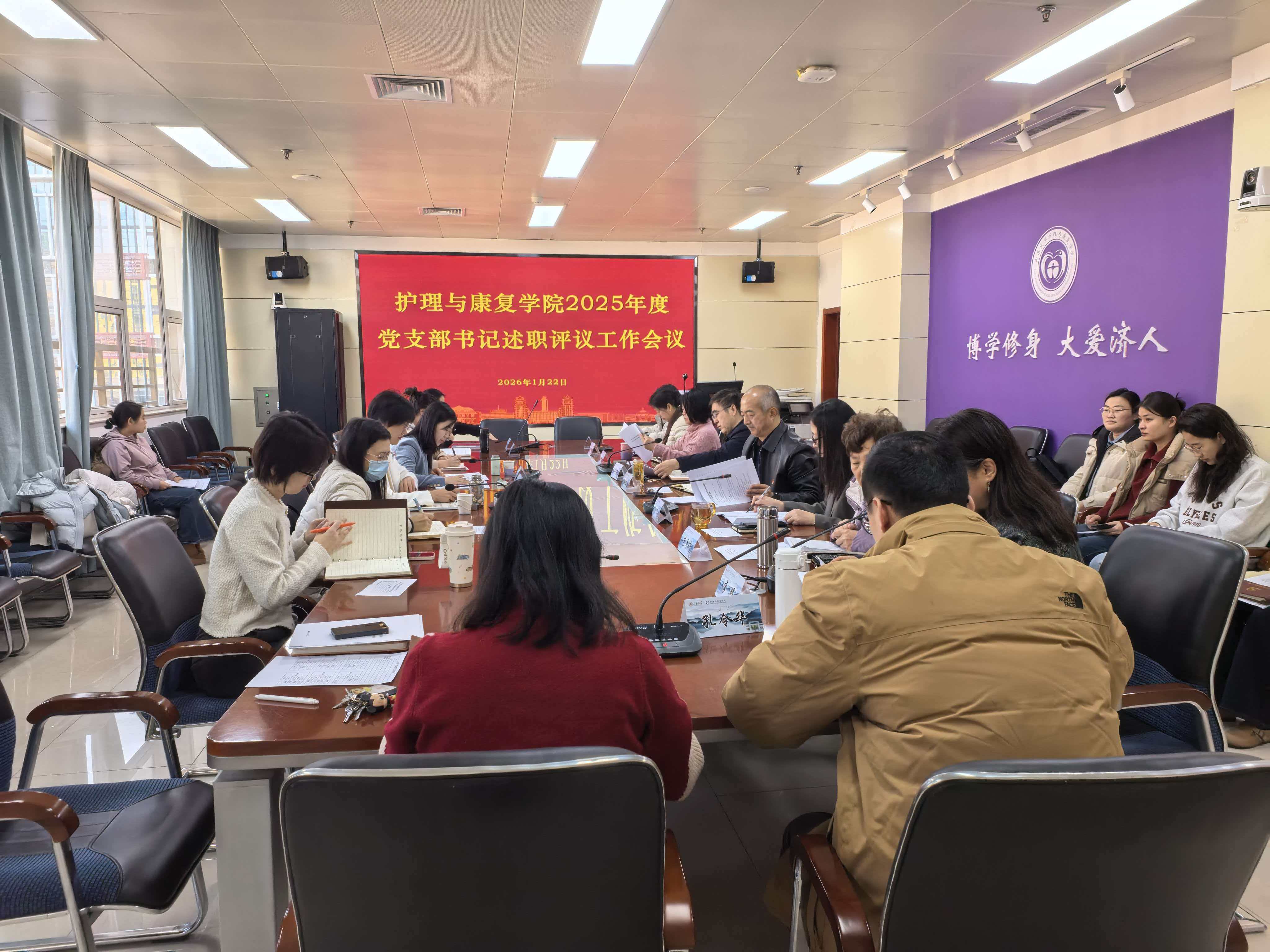 2026年1月22日上午,护理与康复学院党委召开党支部书记履行全面从严治党述责述廉和抓基层党建工作述职评议工作会议。学校第五督导组张瑜、明立彩到会指导,学院党委副书记艾斌主持会议,学院党委委员、联系党支部的党员领导干部、师生党支部书记、各党支部支委成员参会,会议按照“一述一评”的形式进行。
