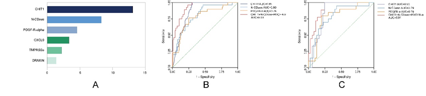 利用机器学习(XGBoost)方法,在数十种差异蛋白中逐层筛选,最终锁定了三种关键分子: